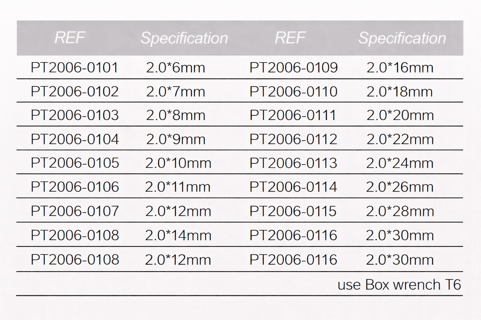 This screw series offers a broad selection of lengths to suit various anatomical requirements. Featuring a T6 box wrench interface, it ensures dependable tool engagement and precise torque control during placement. Consistent manufacturing quality supports long-term fixation reliability.