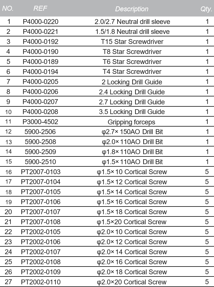 Complete head locking implant box including implants and essential instruments. Designed for veterinary cranial and reconstructive procedures, offering organized layout and efficient intraoperative handling.